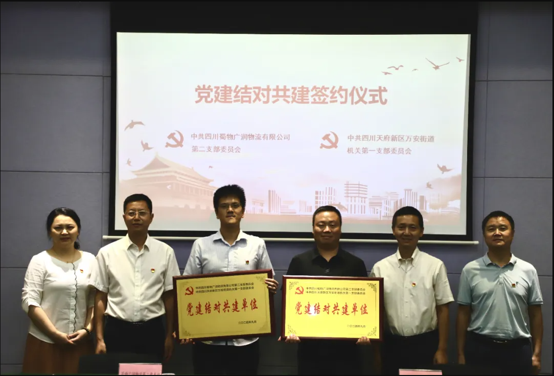 為深入貫徹黨的二十屆三中全會精神,增進基層黨組織之間互聯互動,實現黨組織優勢互補,構建“資源共享、優勢互補、互相促進、共同提高”的黨建工作新格局,9月26日,廣潤物流公司第二黨支部與天府新區萬安街道機關第一黨支部隆重舉行“結對共建”簽約儀式,萬安街道黨工委書記田昆、廣潤物流公司黨委書記 、執行董事、總經理張議出席會議。