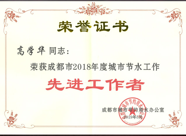 5月10日,成都市節(jié)約用水辦公室召開“2018年成都市節(jié)水宣傳周啟動(dòng)暨2018年度節(jié)水先進(jìn)表彰大會(huì)”,我司被授予“成都市2018年城市節(jié)水工作先進(jìn)單位”稱號(hào),高學(xué)華同志被評(píng)為“成都市2018年度城市節(jié)水工作先進(jìn)工作者”稱號(hào)。