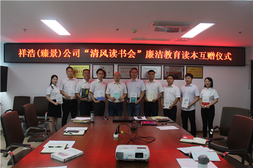 為深入貫徹落實習近平新時代中國特色社會主義思想, 切實抓好“不忘初心、牢記使命”主題教育,加快廉潔文化 建設全覆蓋,進一步筑牢清正廉潔思想防線,根據城鄉集團紀委《關于開展“廉動城鄉、共贏發展”廉潔文化進項目活動的通知》,公司紀檢小組制定了《祥浩公司“廉動城鄉、共贏發展”廉潔文化進項目活動實施方案》并按實施方案于7月17日組織開展“清風讀書會”廉潔教育讀本互贈活動暨讀書分享會啟動儀式。